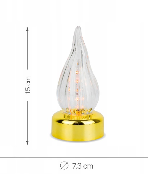 Led žvakė su liepsnos efektu, L-1 15 cm. aukso spalvos