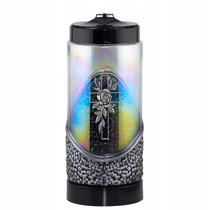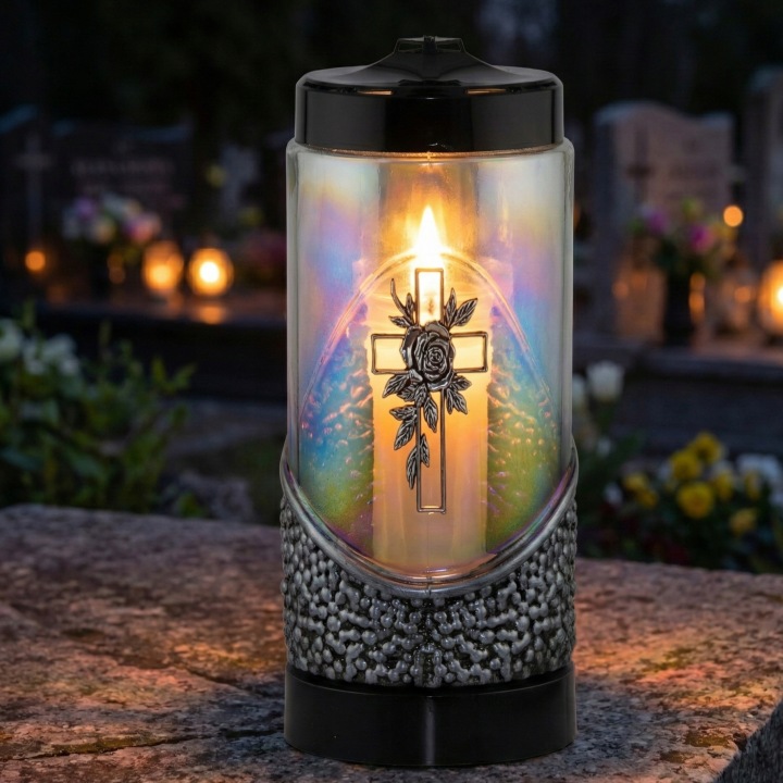 – Perlinis stiklas: Korpusas pagamintas iš vaivorykštinio stiklo, kuris gražiai išsklaido liepsnos šviesą, sukurdamas šiltą ir ramią aurą.