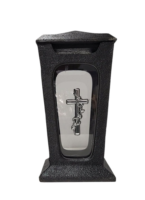 Masyvus, elegantiškas KAPŲ ŽIBINTAS. Stabilus,atsparus vėjui dėl savo masyvumo,sveria apie 3 kg. Pagaminta iš sintetinio akmens, sienelės iš skaidraus stiklo ,