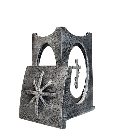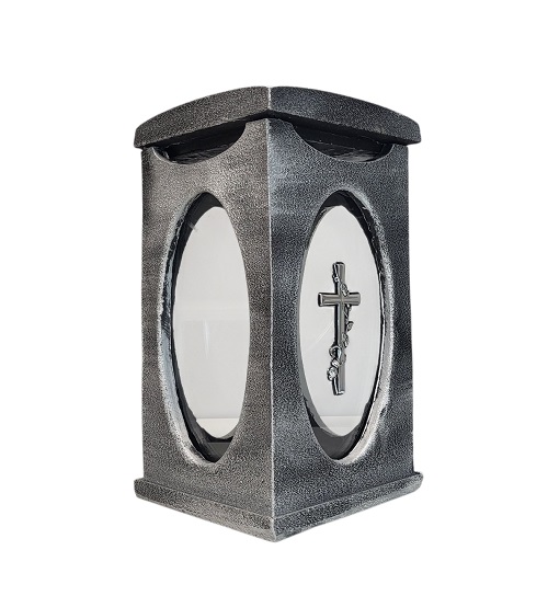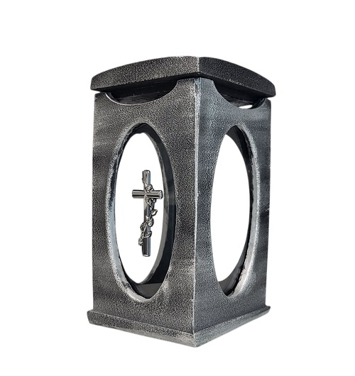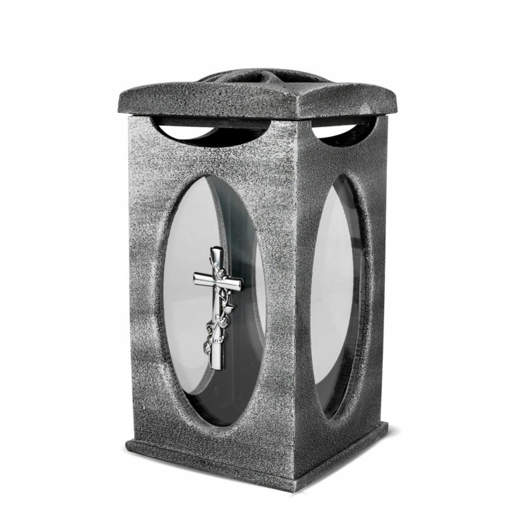 Masyvus, elegantiškas KAPŲ ŽIBINTAS. Stabilus,atsparus vėjui dėl savo masyvumo,sveria apie 3 kg. Pagaminta iš sintetinio akmens, sienelės iš skaidraus stiklo ,
