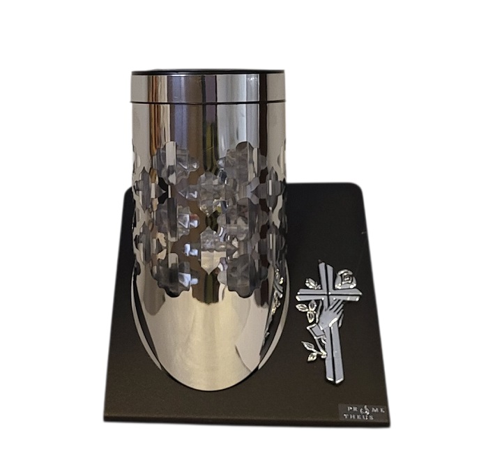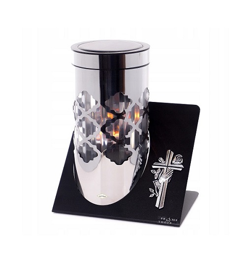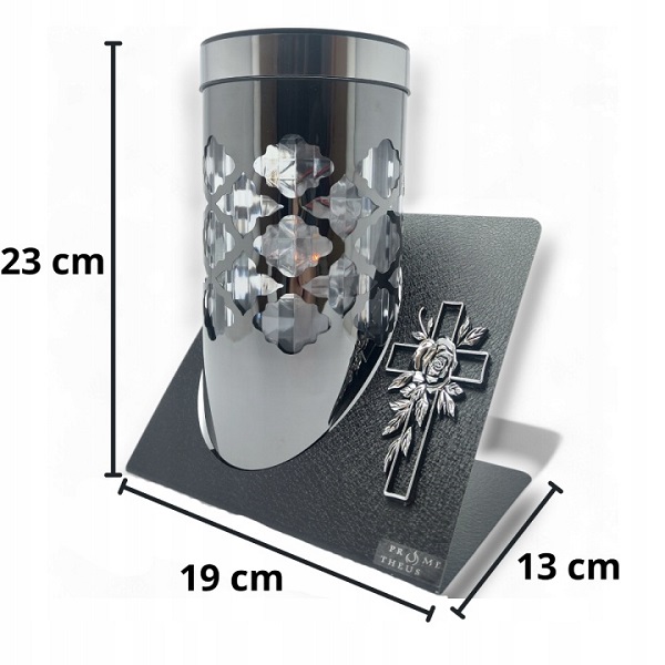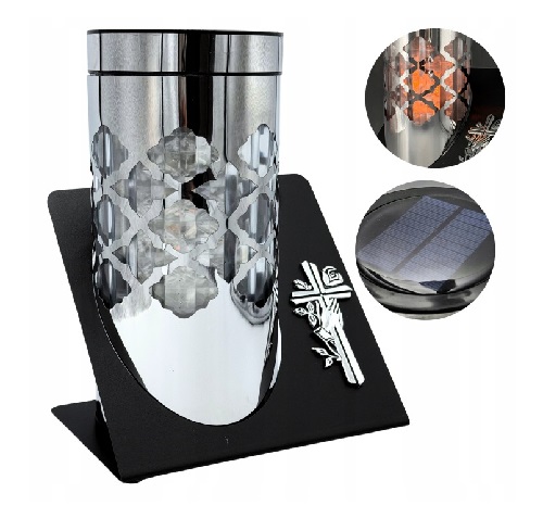 Žvakidė į kapines PARIS SOLAR 2 su kryželiu – sidabro spalvos
