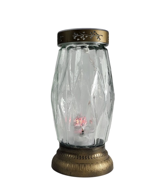 Žvakidė į kapines .Pagaminta iš jstiklo su saulės baterija. Šviečia raudona šviesa. Aukštis 29 cm.