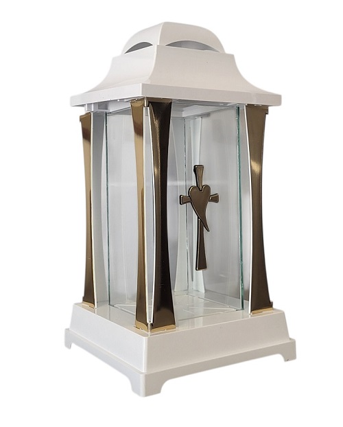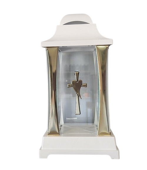 Žvakidė į kapines Z-12 Alba balta/auksinė 37 cm.